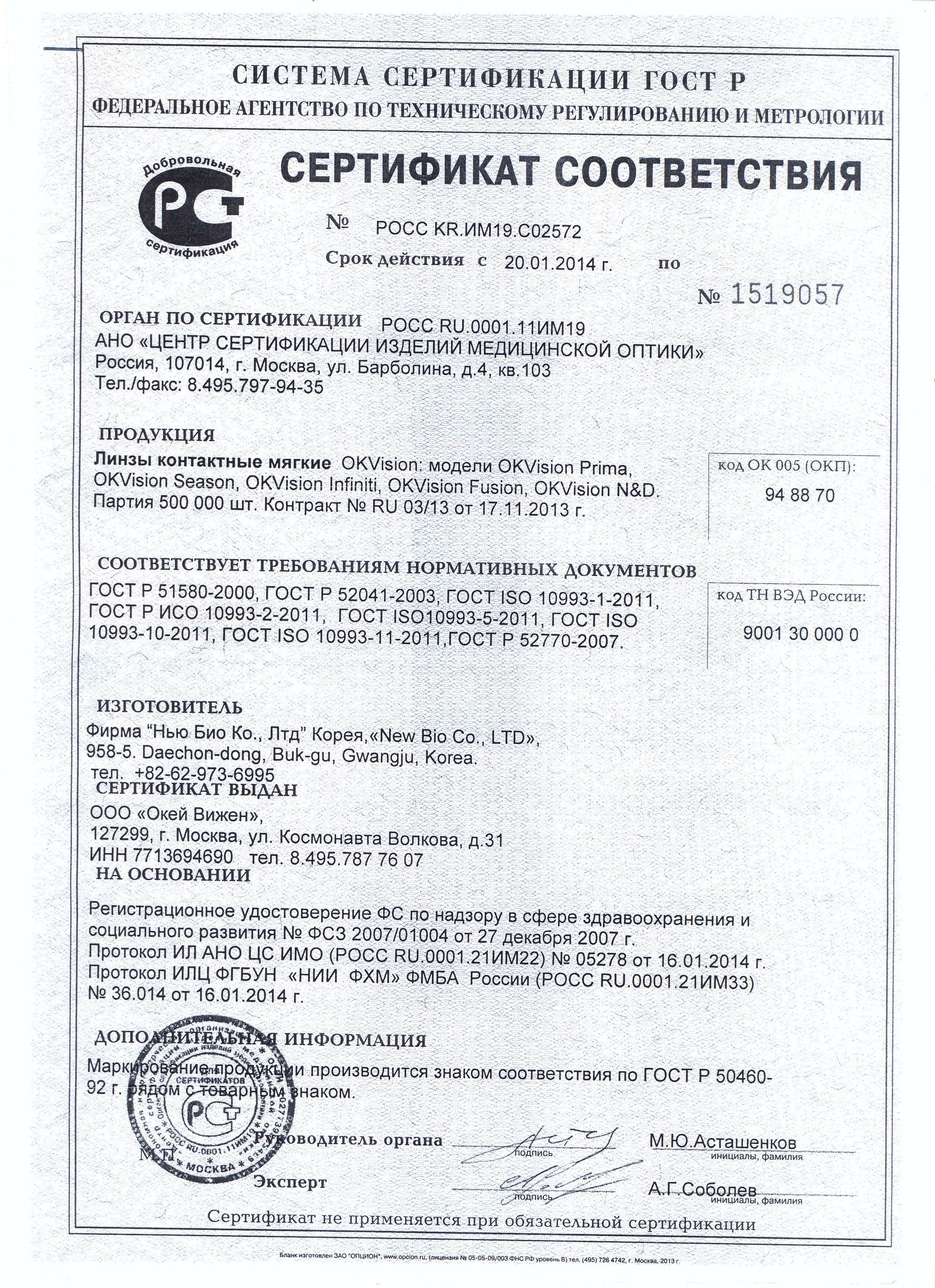 Контактные линзы OKVision Fusion изготавливаются в соответствии со стандартами качества и безопасности, поэтому их можно использовать без опасений за здоровье глаз.