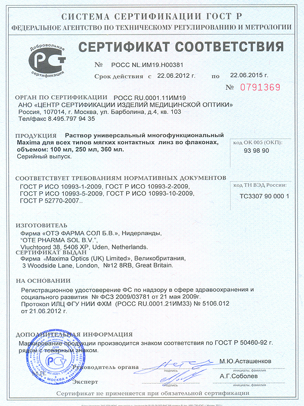 Раствор для линз Maxima 250 мл + контейнер